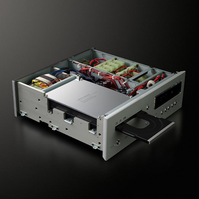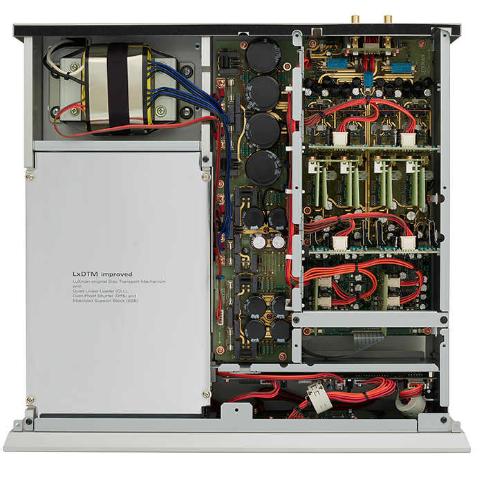 LxDTM-i是Luxman 獨(dú)創(chuàng)高強(qiáng)度CD轉(zhuǎn)盤,具有堅(jiān)固的箱體結(jié)構(gòu),整個(gè)機(jī)構(gòu)由 8 毫米厚鋁制側(cè)框和5毫米厚的鋼制頂板組成。在D-10X中,機(jī)構(gòu)安裝部分已從傳統(tǒng)的側(cè)框內(nèi)支撐方法升級(jí)為直接裝配到跟框架本身的一體結(jié)構(gòu)。LxDTM-i (改進(jìn)型)可有效阻隔外部振動(dòng),將 SACD/CD 機(jī)構(gòu)的潛力發(fā)揮到極致,還具有高精確讀取能力。它還采用了左側(cè)機(jī)械布局,為各種信號(hào)提供了理想的最佳路徑。它還配備了防塵快門,可實(shí)現(xiàn)防塵、靜音和優(yōu)雅的操作。