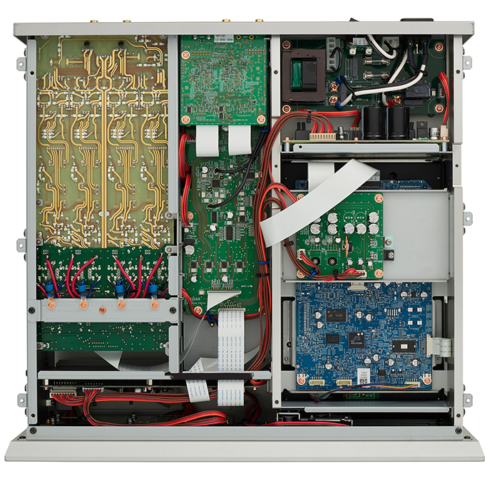 音頻信號(hào)電路采用剝離涂層PCB板,消除了影響音質(zhì)的電阻。這最大限度地減少了電容成分的產(chǎn)生,使信號(hào)傳輸?shù)念l率衰減降到最低。此外,帶有平滑曲線的獨(dú)特圓形布線模式可確保信號(hào)流暢。