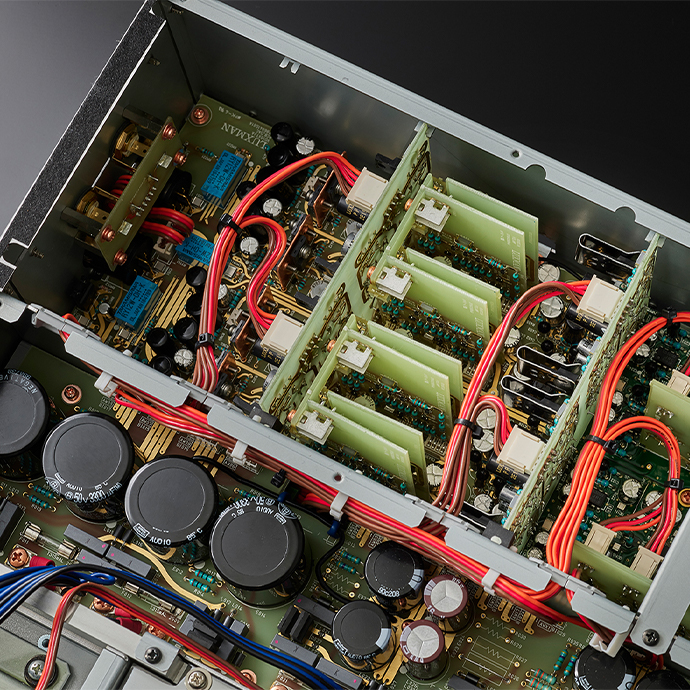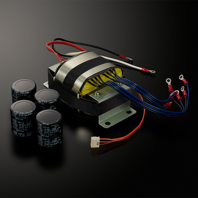 D-10X 的電源變壓器容量比上一代產(chǎn)品 D-08u 提高了 27%,并且采用了傳統(tǒng)的 Luxman 高慣性電源環(huán)境,每個(gè)電路都有獨(dú)立的穩(wěn)壓器和大容量塊狀電容器。強(qiáng)大而穩(wěn)定的運(yùn)行使其具有充分的儲(chǔ)備余量。