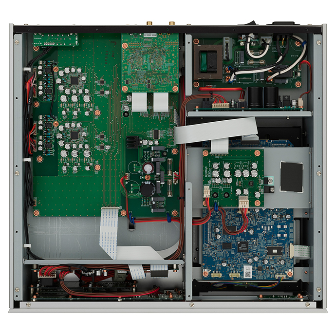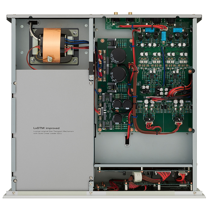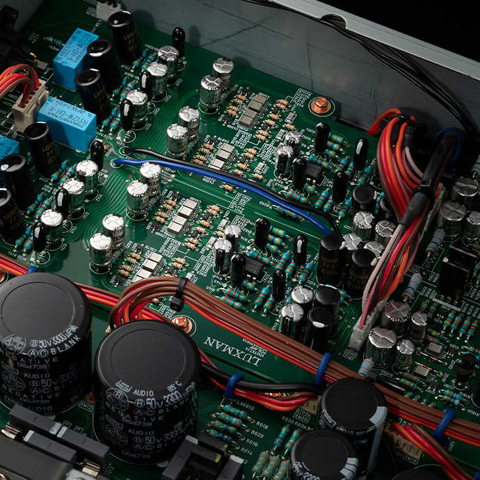 在 D-07X 中,電源變壓器的容量比之前的 D-06u 增加了 50%。每個電路中都安裝了獨立的穩(wěn)壓器塊,并通過大容量塊狀電容器供電,從而創(chuàng)造了傳統(tǒng)的 Luxman 高慣性電源環(huán)境。實現(xiàn)了清潔、穩(wěn)定的電源供應(yīng)。