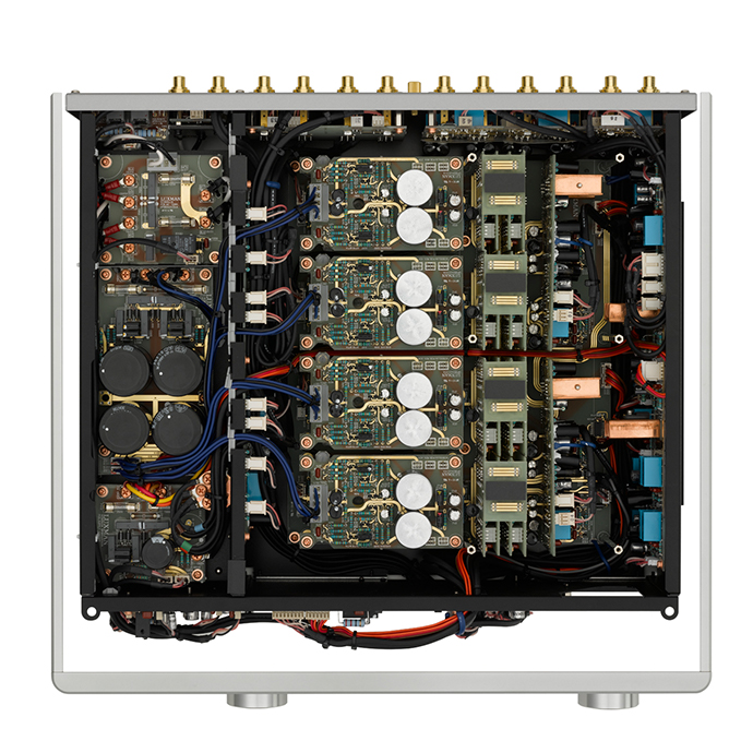 輸入輸出端子是與其他音頻組件進(jìn)行信號(hào)交互重要且容易導(dǎo)致音質(zhì)下降的部件。在C-700u+/M-700u+中,RCA端子采用了具有與銅相同高導(dǎo)電率和與黃銅相當(dāng)硬度新材料銅合金。這種材料實(shí)現(xiàn)了不損害信號(hào)純度的連接。此外,對(duì)于電源供應(yīng)口的交流電源入口,選擇了經(jīng)過鍍金和低溫退火處理的高可靠零件。這樣可以傳輸穩(wěn)定的電源能量。