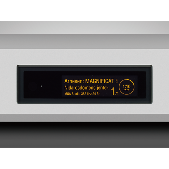 NT-07 的USB輸出最高可達 PCM 768kHz/32bit 和 DSD 22.5MHz/1bit(光纖和同軸輸出的最高 PCM 為 192kHz/24bit)。它還內(nèi)置了針對 MQA 格式音源的核心解碼功能,有三種可選模式--“關閉”、“核心解碼 ”和 “直通”--以適應所連接的 D/A 轉(zhuǎn)換器。前面板中央的大型高分辨率 OLED 顯示屏可輕松顯示各種信息,包括正在播放的歌曲名稱、藝術家姓名、時間和播放源格式。