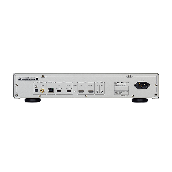 NT-07 與 OpenHome 標準兼容,可以讀取存儲在 NAS 上的音樂服務器中的音源數(shù)據(jù),并以高質(zhì)量進行播放。如果選擇具有更強噪音對策和電源的 NAS,如 Melco Synklet 的 DELA 或 I-O DATA 的 fidata(作為專用音頻設備開發(fā)),就能以更高的質(zhì)量和便利性訪問音源。此外,前端和后端還提供 USB 端子(任一專用),用于連接包含音源數(shù)據(jù)的 USB 存儲器,而無需構建網(wǎng)絡環(huán)境。