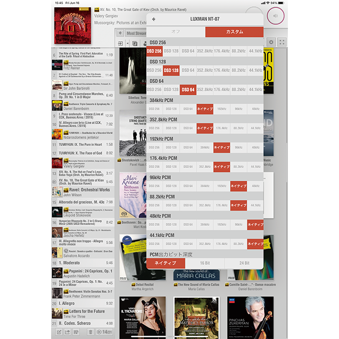 NT-07 還可以作為流行的 Roon 綜合音樂播放軟件(將于 2024 年 5 月開始支持)的輸出設備(Roon Ready)運行,在指定 NT-07 為輸出目的地的情況下,可以從蘋果設備(iPhone/iPad/Mac)和 Windows PC 上進行播放。NT-07 作為輸出目的地。NT-07 還配備了重采樣功能,可與所連接的 D/A 轉(zhuǎn)換器支持的采樣頻率和比特率相匹配,可對 PCM 44.1kHz 至 384kHz、比特率 16bit/24bit 和 DSD 2.8MHz 至 11.2 MHz 等各種格式進行單獨的上/下采樣設置。可對每種格式分別進行上/下采樣設置。