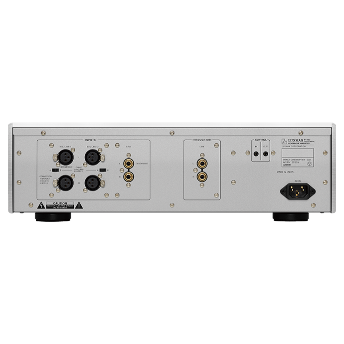 3組輸入(RCA×1,XLR x 2),用于連接多個(gè)音源設(shè)備和直通 輸出(RCA)。兩種輸出模式,使用平衡輸出端子時(shí)可切換(BAL:BTL平衡/G-DIV接地分離:并聯(lián)非平衡,左右獨(dú)立接地)。