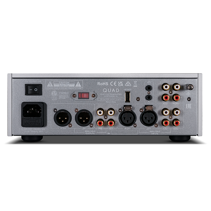 QUAD 33由數(shù)字微處理器控制,但在其他方面忠實地采用了經典的模擬設計。提供了一系列輸入選項。三組 RCA輸入、一組平衡 XLR 輸入和一組唱機輸入,提供了所需全部模擬功能。全新的唱頭輸入適用于 MM 和 MC 唱頭,可通過直觀前面板或遙控器輕松切換。為303功率放大器提供專用的立體聲前級輸出,并配有RCA和XLR輸出選項。此外,還有一個AUX 直通輸出,可提供額外的多功能性。