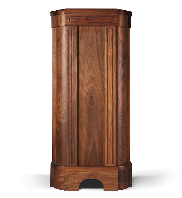 雙層箱體結(jié)構(gòu),主箱體采用進(jìn)口胡桃實(shí)木裝飾,可有效消除箱內(nèi)駐波減少箱體諧振,確保無(wú)音染、聲音干凈.準(zhǔn)確。整個(gè)箱體重量到達(dá)了57公斤,為進(jìn)一步增強(qiáng)低頻效率,使用一個(gè)大容積箱體和雙低音反射孔設(shè)計(jì)。