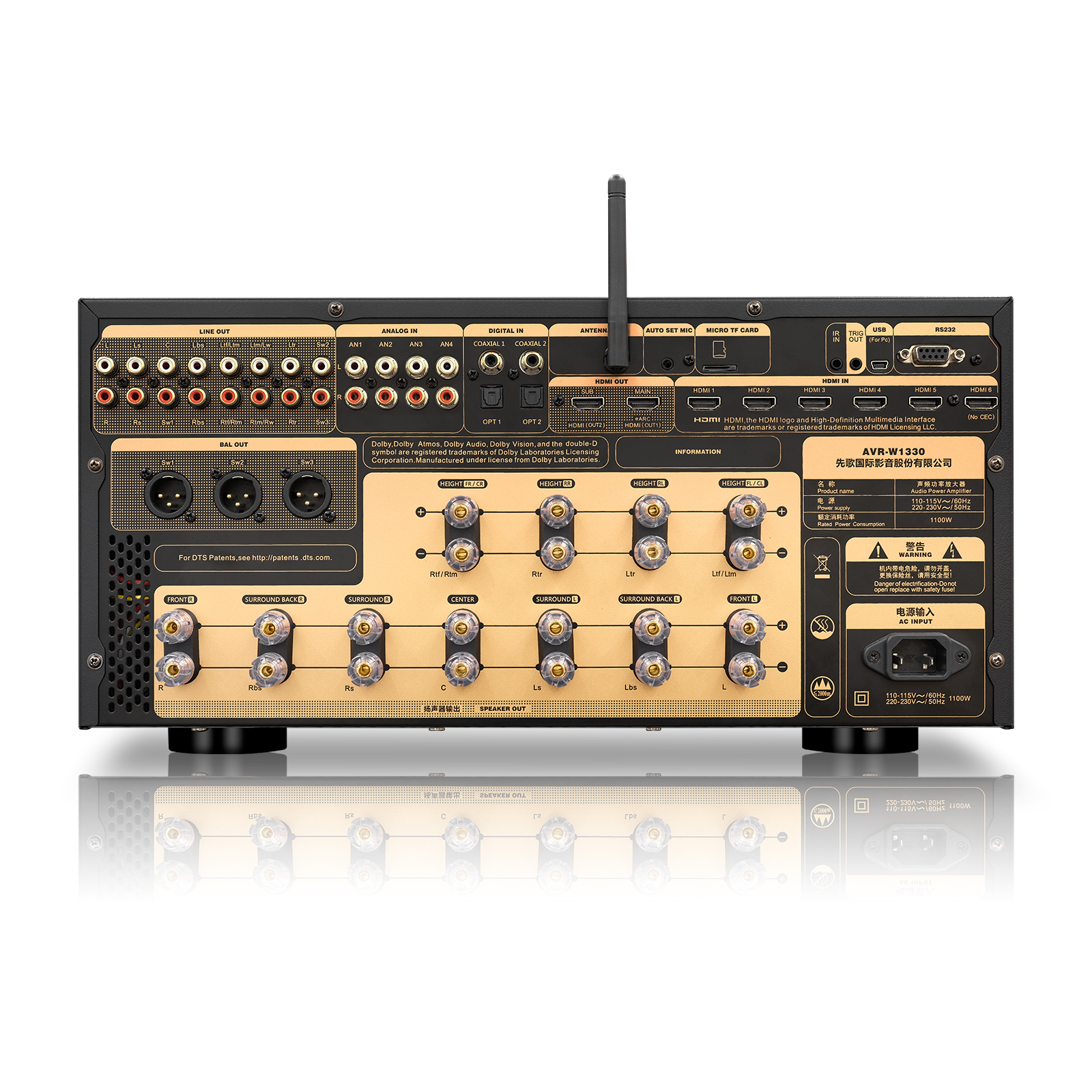 L/R/C聲道,240W/8Ω(THD=1%,單聲道1kHz) ,其它聲道120W/8Ω(THD=1%,單聲道1kHz)